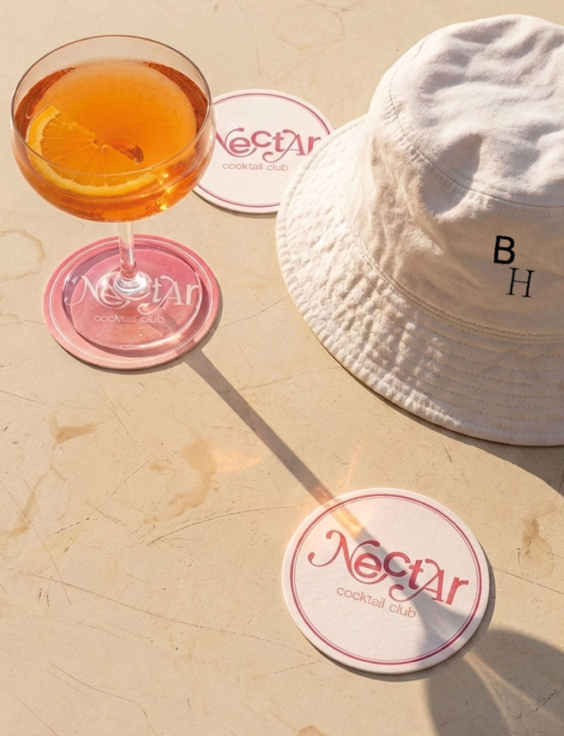H5 designed this identity, drawing inspiration from the colors of the southern French sky. It features a gradient that transitions from blue to orange. Based on this gradient idea, we assigned color codes to each of the hotel's services. We also designed a new identity for the restaurant and cocktail bar, creating elegant lettering combined with the modern font used in the overall identity.